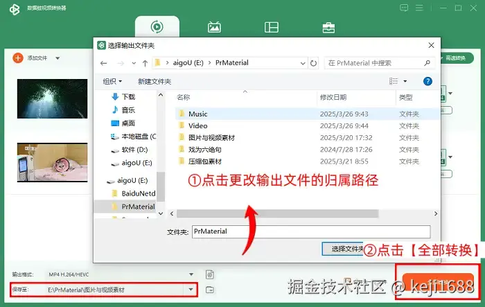 Step4:点击 【保存至】 ,在下拉列表之中,点击 【浏览并选择文件夹】 ,然后更改输出mp4视频文件的归属路径。最后,我们点击 【全部转换】 按钮。