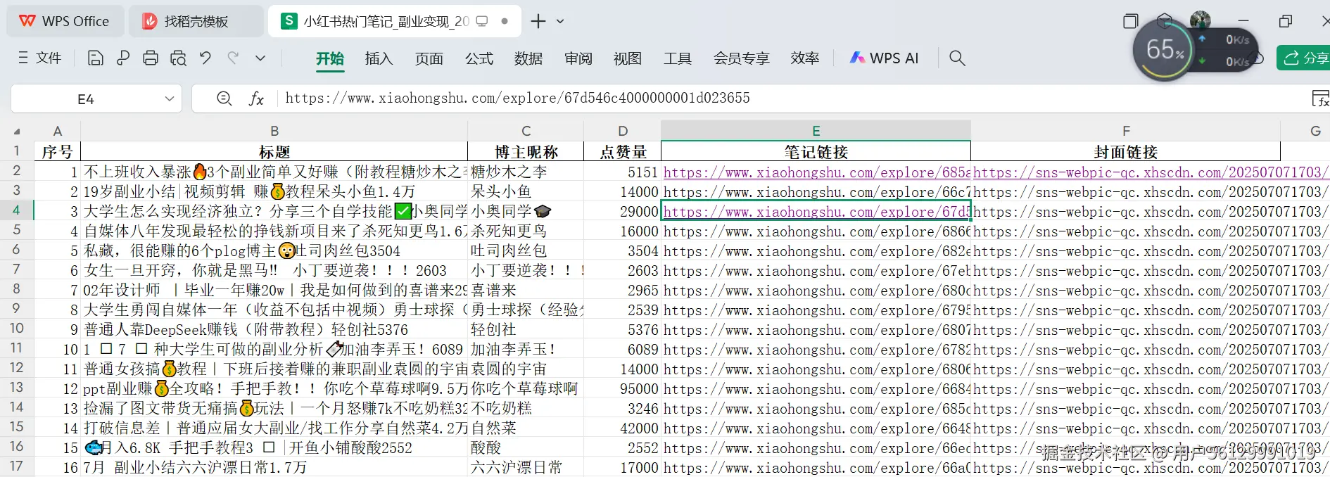 👉 回车后,Aipy 会自动抓取高质量笔记数据,3 分钟后桌面就会出现带数据的 Excel。一键点击跳转笔记主页,再也不用漫无目的找爆款选题了。