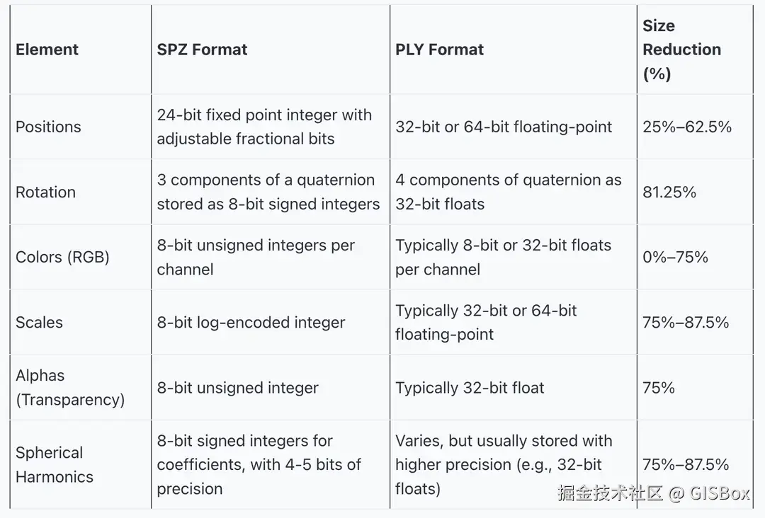那我们看下spz这个格式。spz是由Niantic Spatial提出来的一个开源的压缩格式,号称是高斯的JPG格式,我们看下官方给出的压缩比: