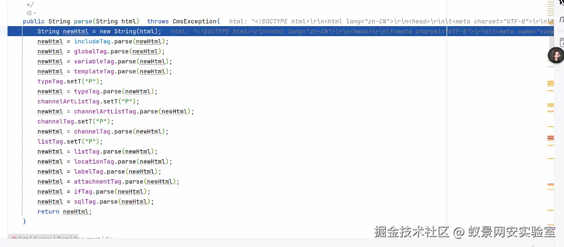 识别我们的模板内容后开始解析各种标签,然后是我们的 include
