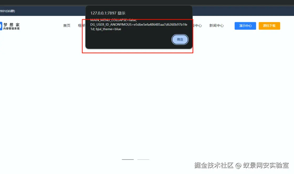 成功 xss,当然我们真实使用的话可以利用我们的 xss 平台