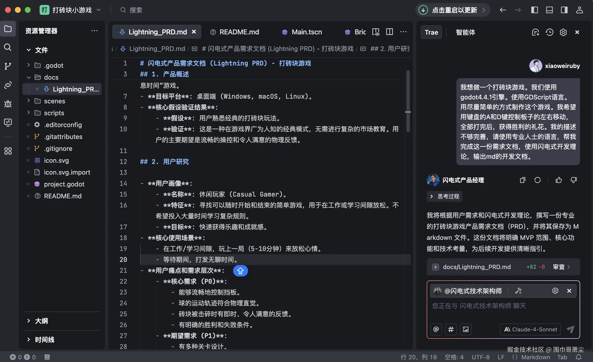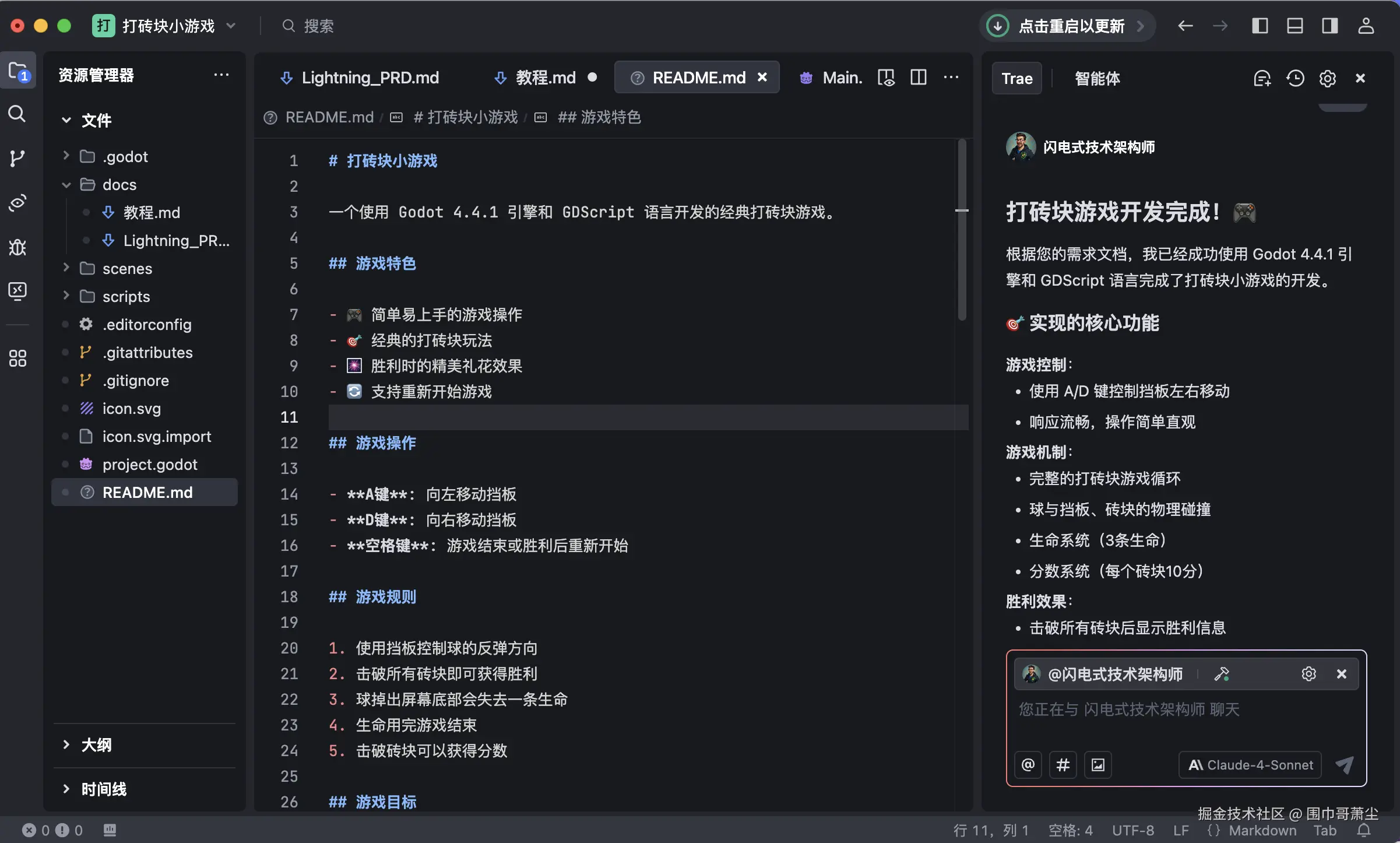 「掌握Trae IDE 视频教程」 Trae+ GodotMCP + Godot,20 分钟用 AI 构建打砖块游戏🧣