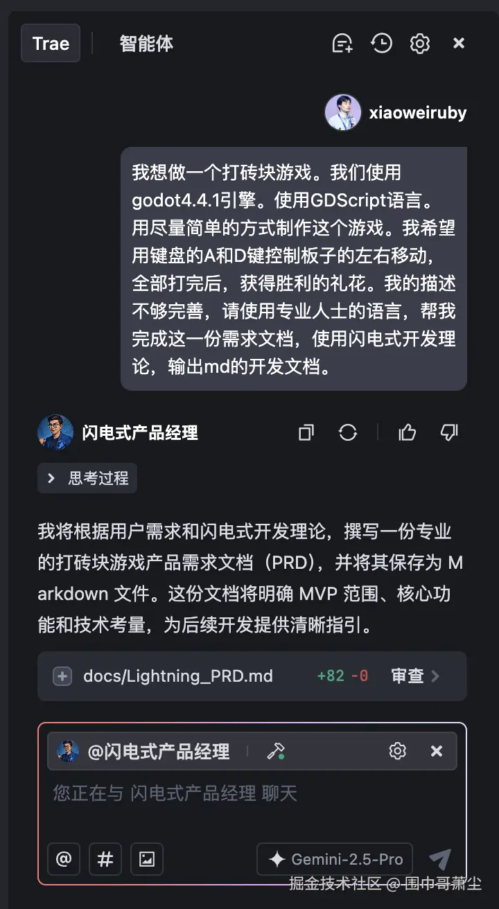 🌟🌟🌟🌟🌟我用Trae 做了一个有意思的Agent 「闪电式产品经理」。 点击 s.trae.com.cn/a/083c1e 立即复刻,一起来玩吧!
