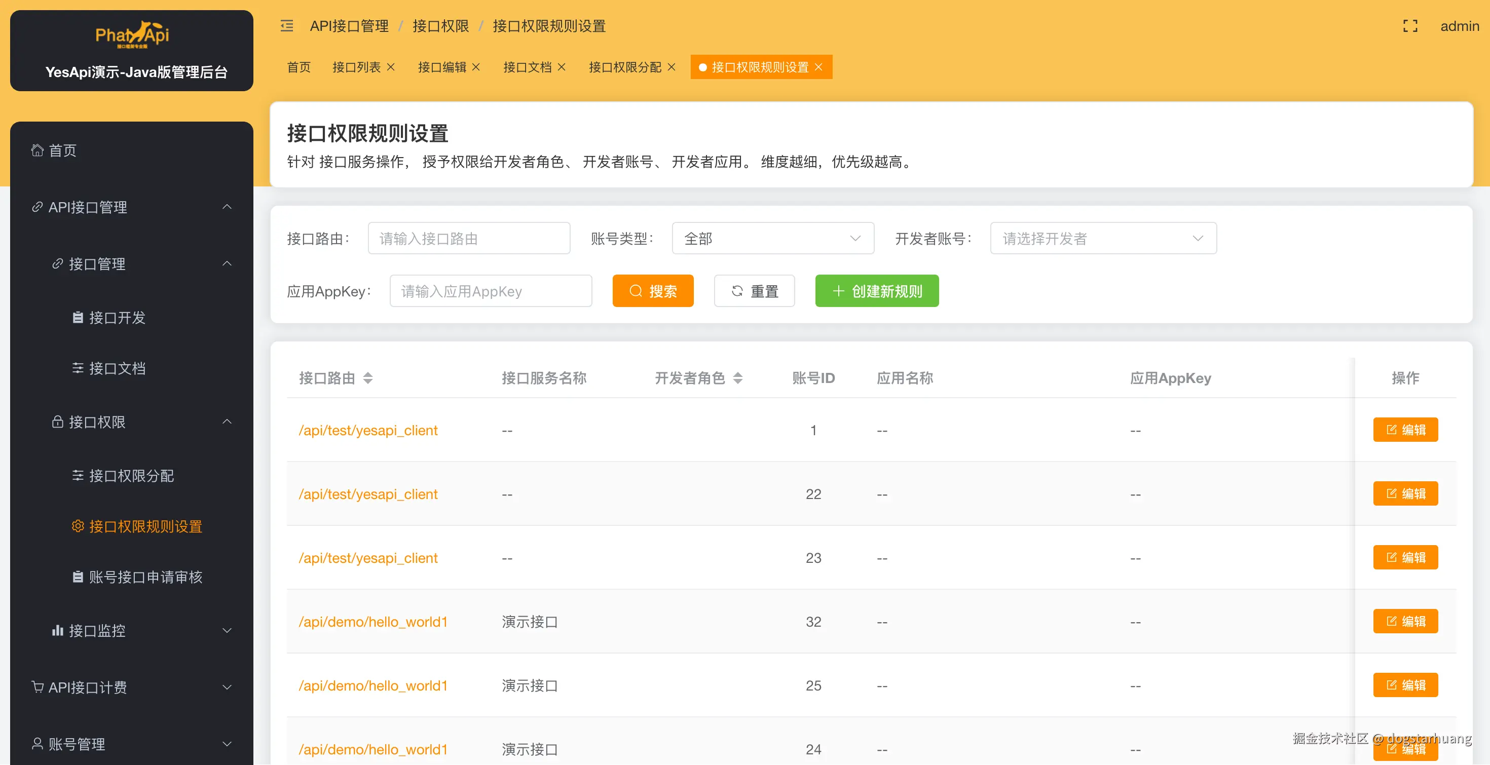 - 开发者后台:基于Vue3开发,提供应用管理、接口权限查看等功能