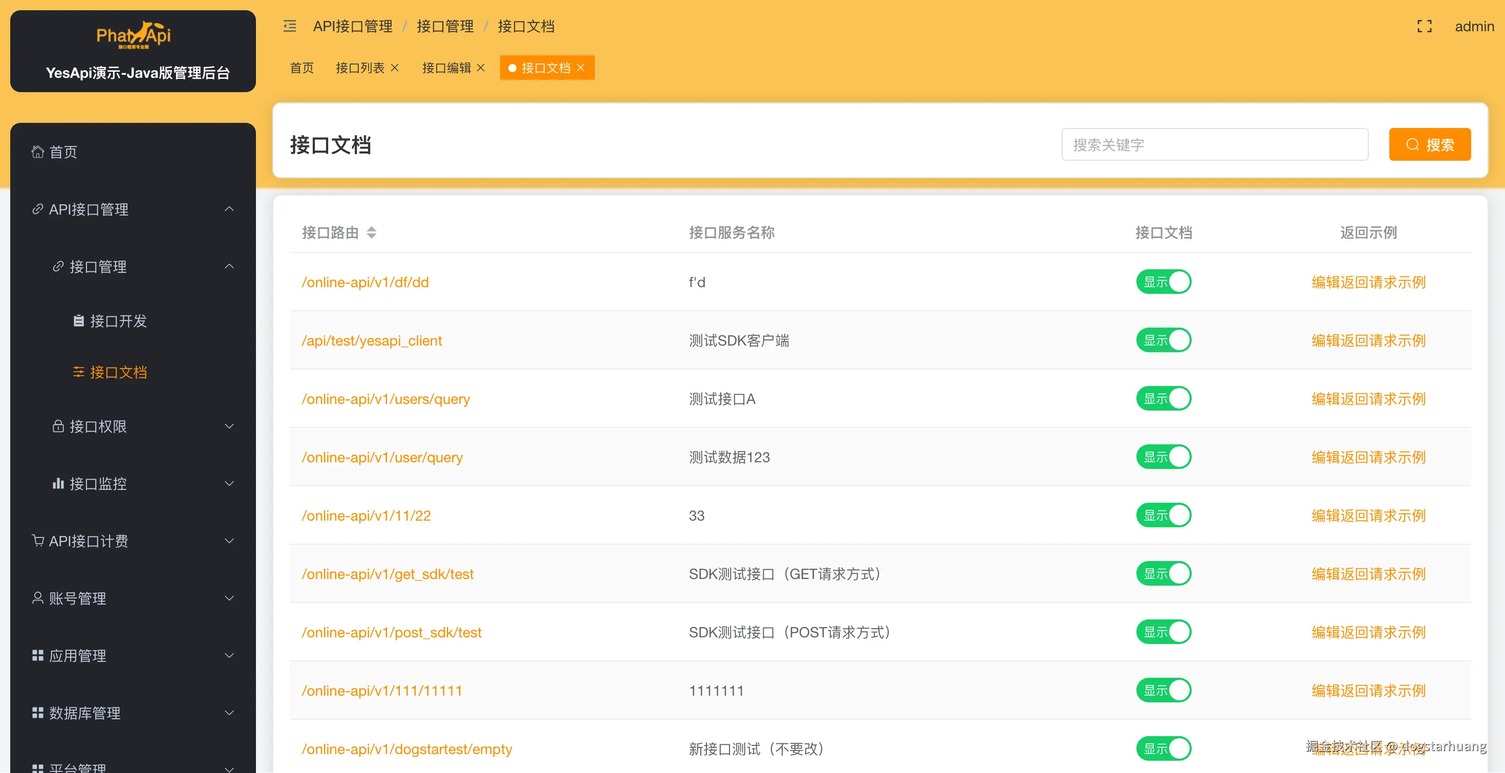 - 开放平台:java.demo.yesapi.cn/platform/