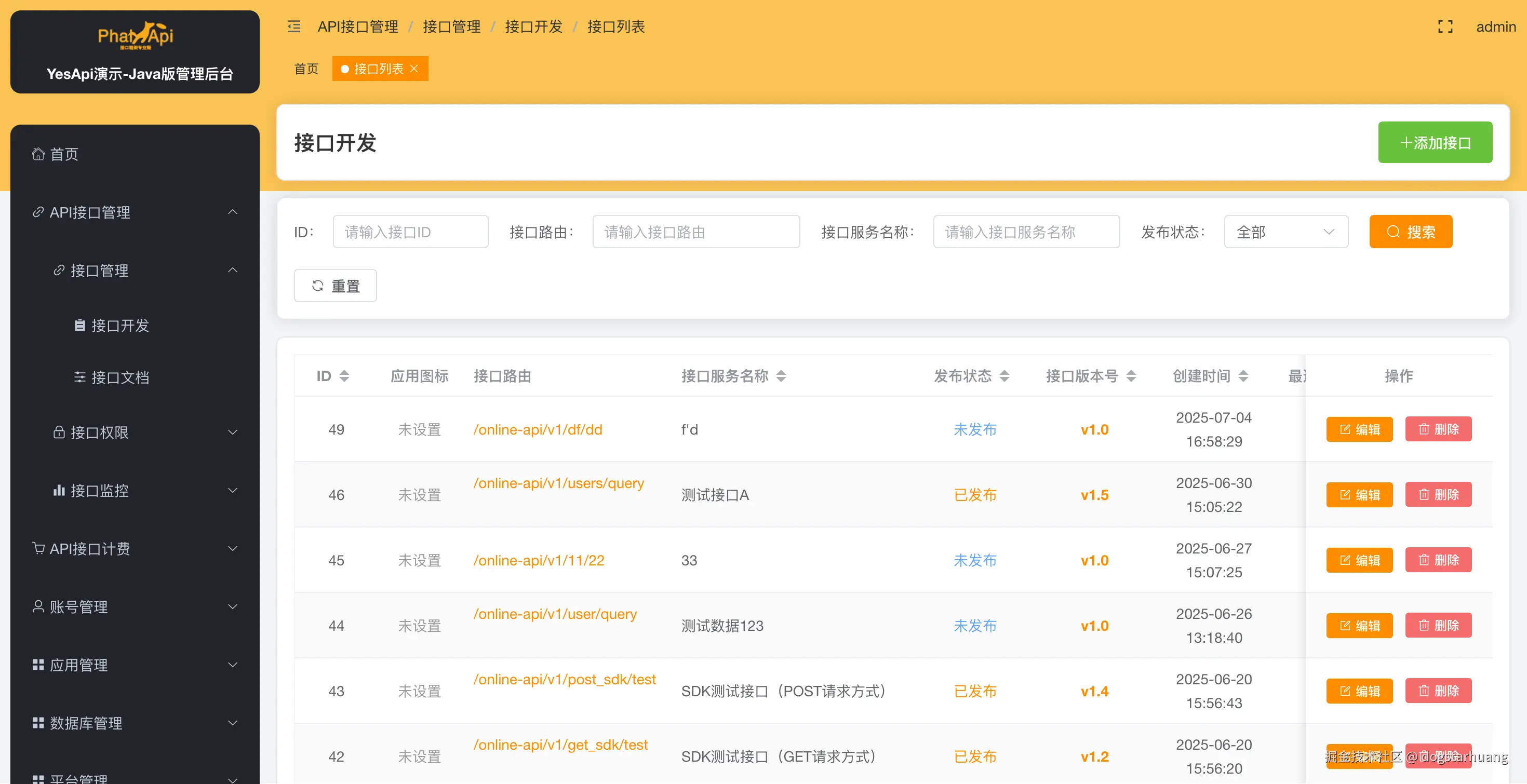 - 平台首页:java.demo.yesapi.cn/