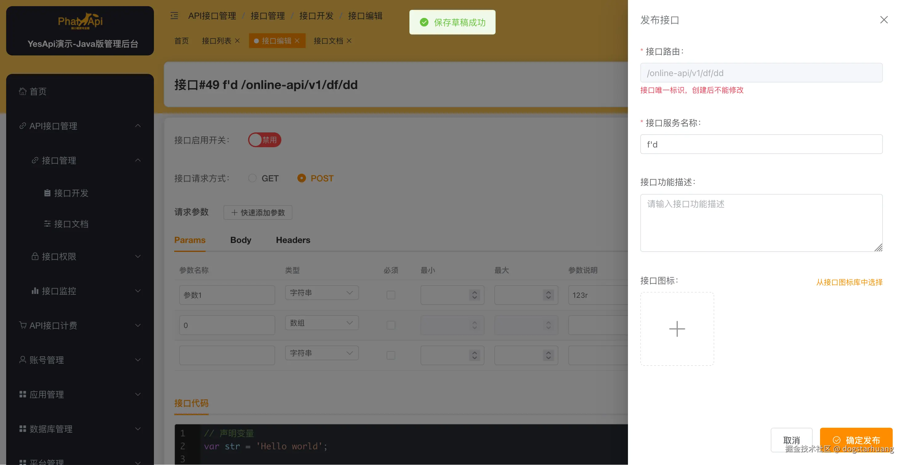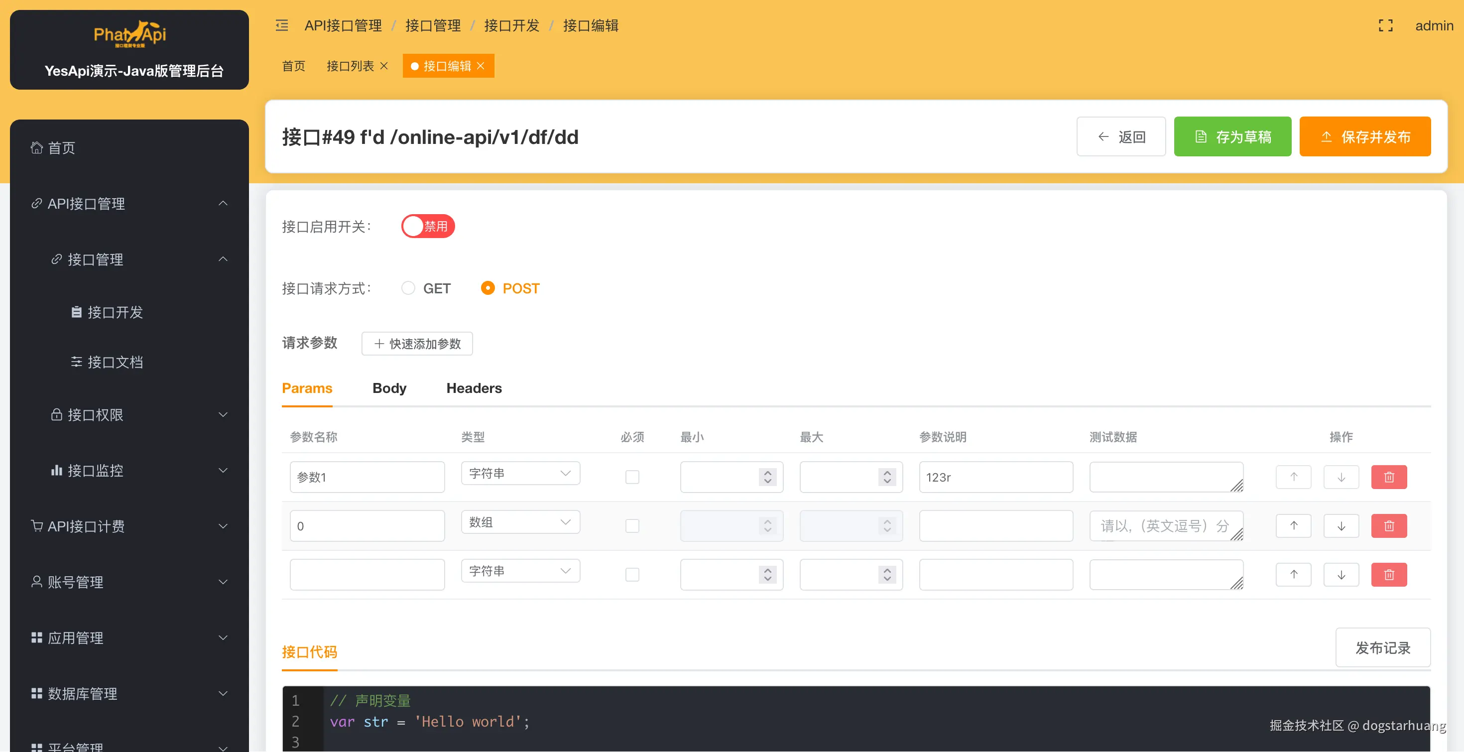 - API接口管理:创建、编辑、删除API接口,设置请求参数和响应格式