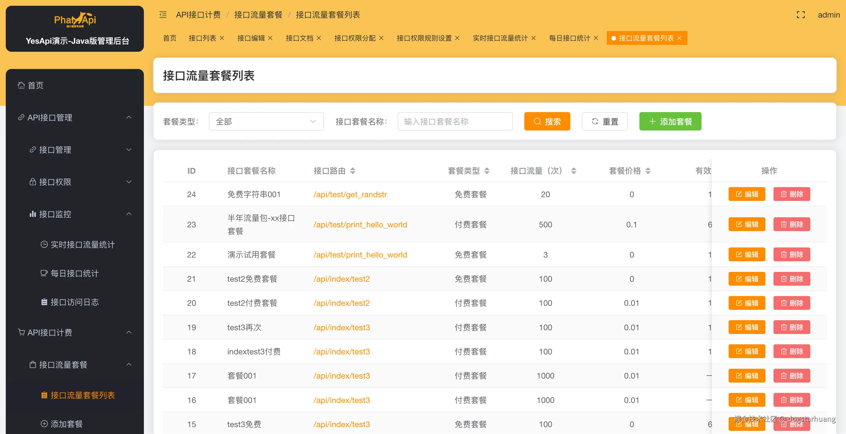- 管理后台:java.demo.yesapi.cn/admin/