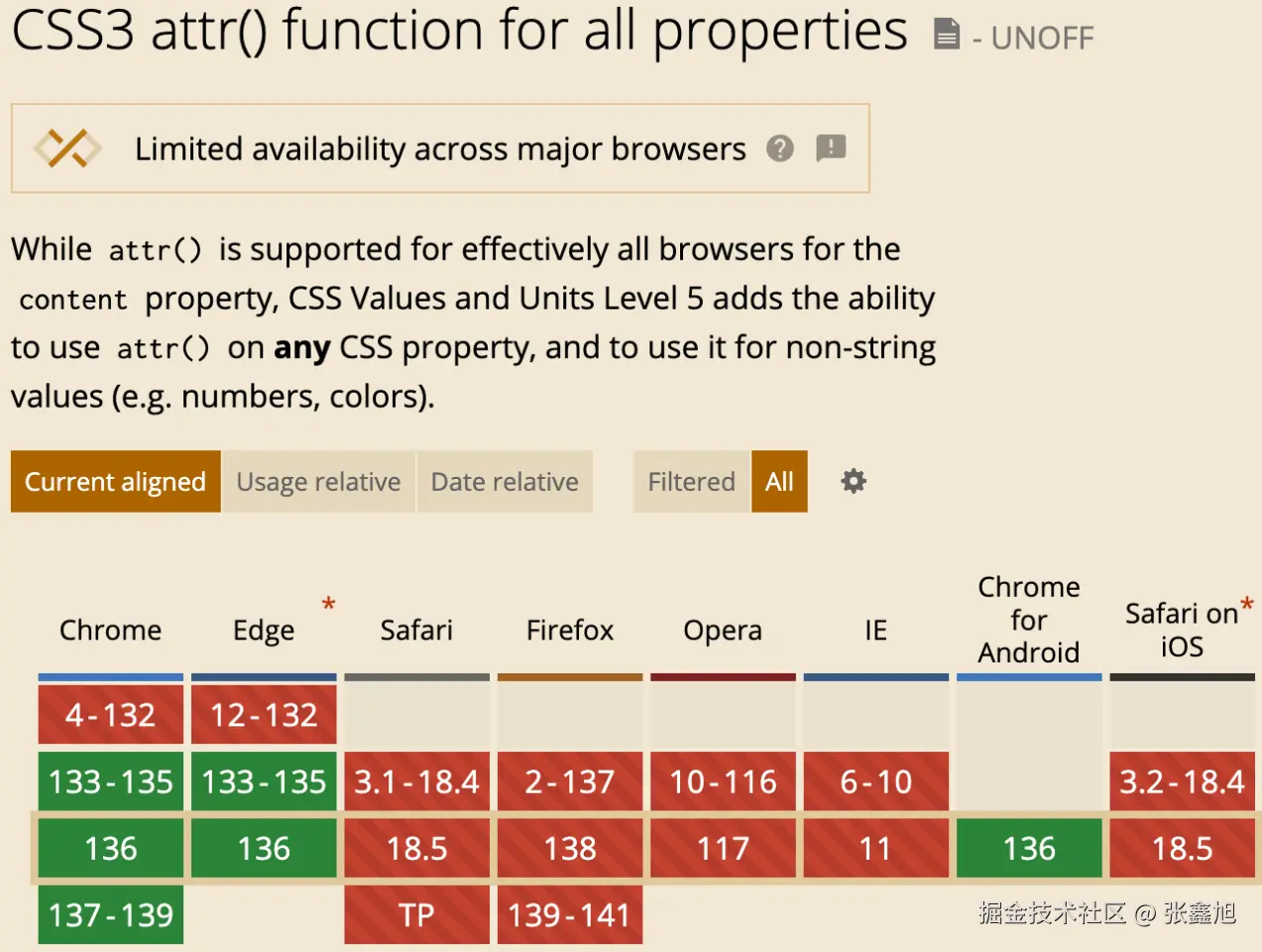 关于attr()函数更多内容,可以参加此文:“震惊,有生之年居然看到CSS attr()全属性支持” - www.zhangxinxu.com/wordpress/?…