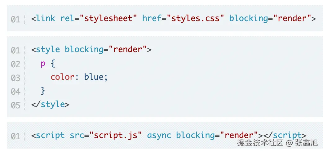 更多内容参见我撰写的这篇文章:“光速了解script style link元素新增的blocking属性” - www.zhangxinxu.com/wordpress/?…