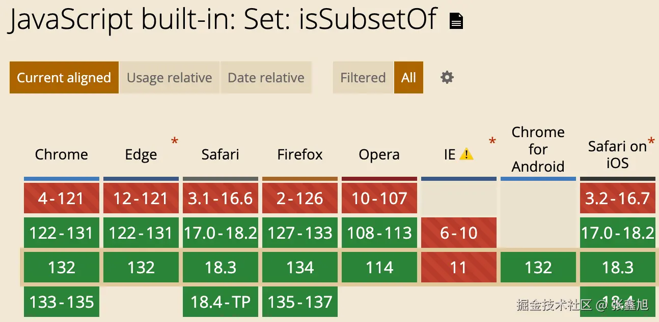 JS Set新支持了intersection, union, difference等方法,可以实现类似交集,合集,差集的数据处理,也支持isDisjointFrom()是否相交,isSubsetOf()是否被包含,isSupersetOf()是否包含的判断。