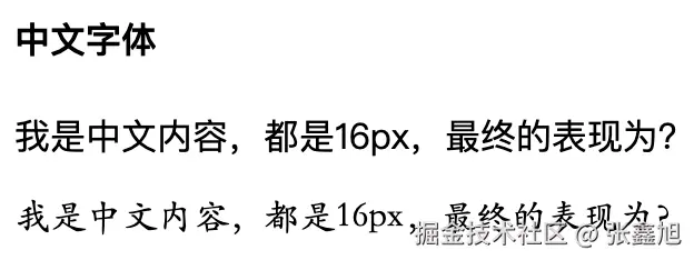 例如,16px的苹方和楷体,虽然字号设置一致,但最终的图形表现楷体的字形大小明显小了一圈: