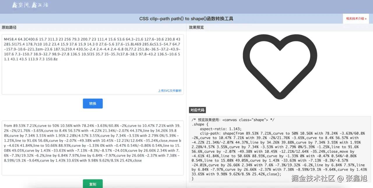 对此,我还专门开发了一个CSS clip-path path() to shape()函数转换工具 - www.zhangxinxu.com/sp/path2sha…
