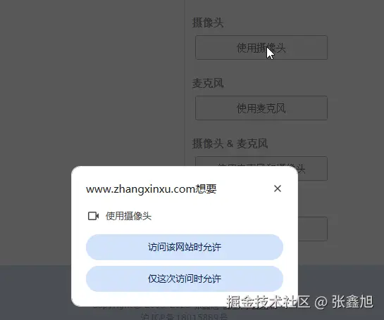 在Web开发的时候,我们会经常用到权限申请,比方说摄像头,访问相册,是否允许通知,又或者地理位置信息等。