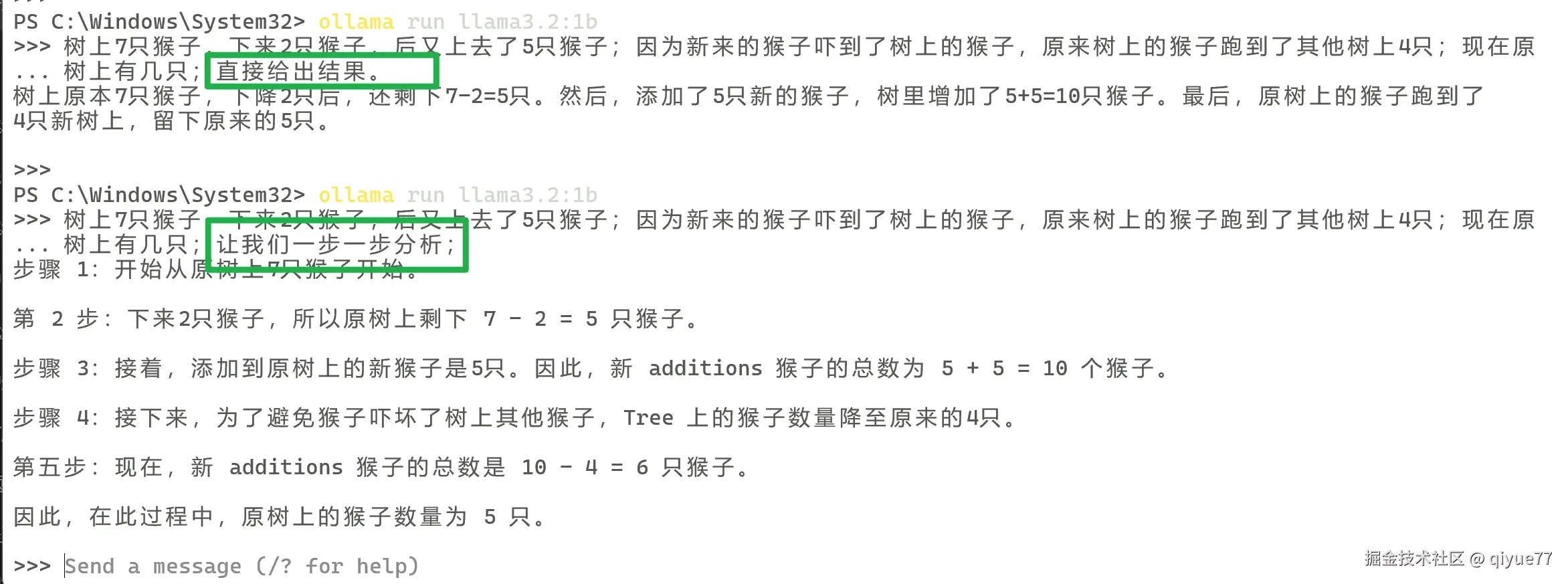 将“让我们逐步思考”添加到原始提示中,我们在提示词里增加了,让我们一步一步的分析,可以看下面示例: