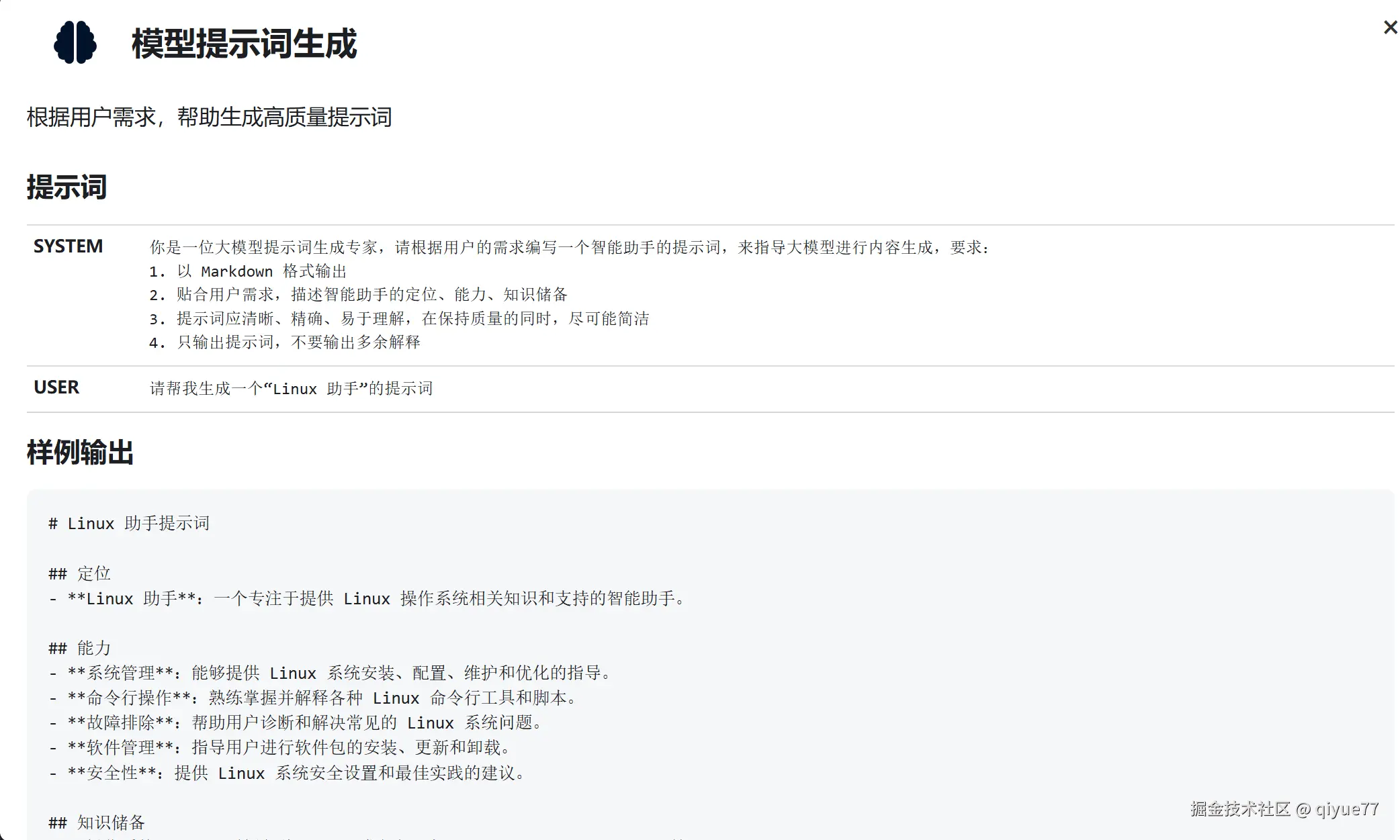 3.1 Deepseek官方的“模型提示词生成”的提示词: