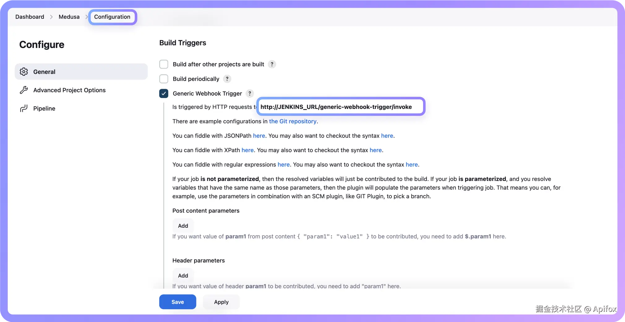 第一步:配置 Jenkins 并获取 Webhook URL