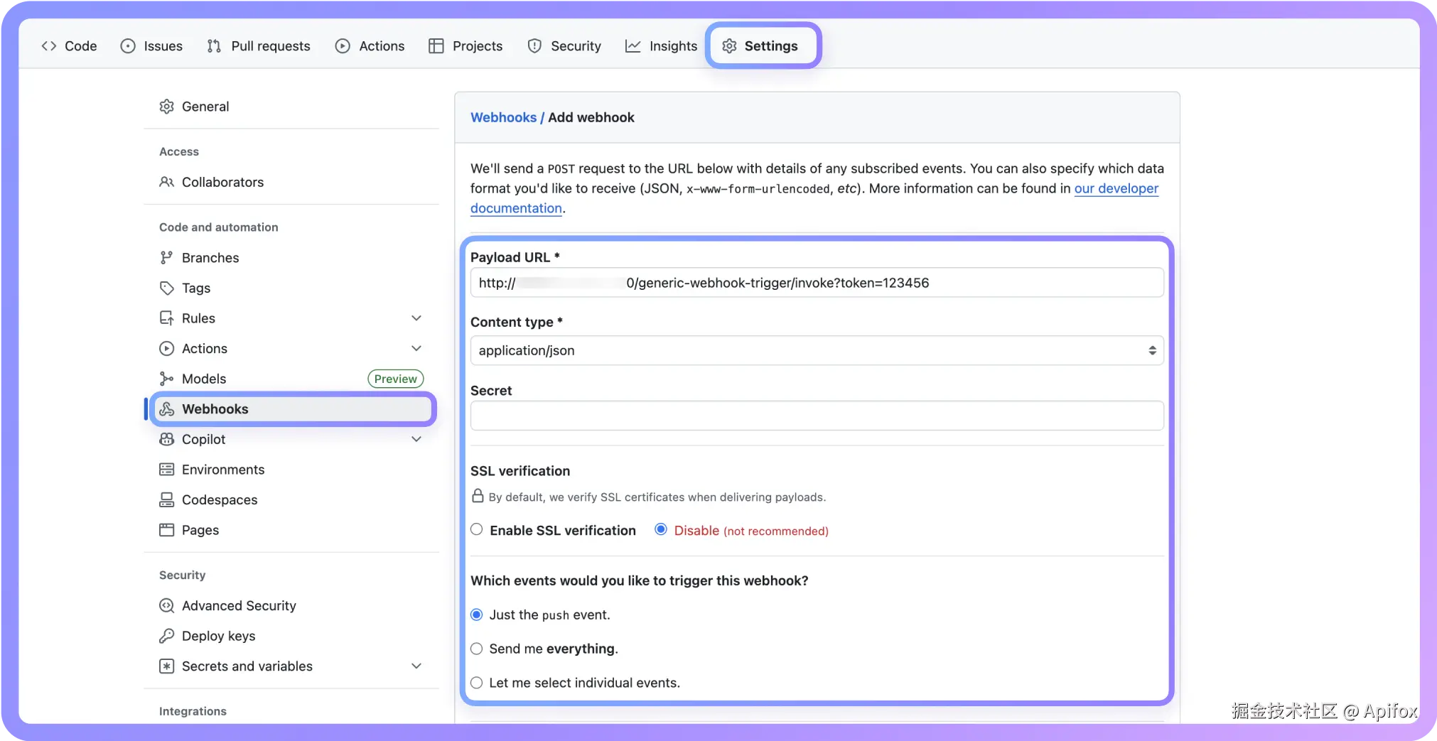 第二步:配置 GitHub Webhook