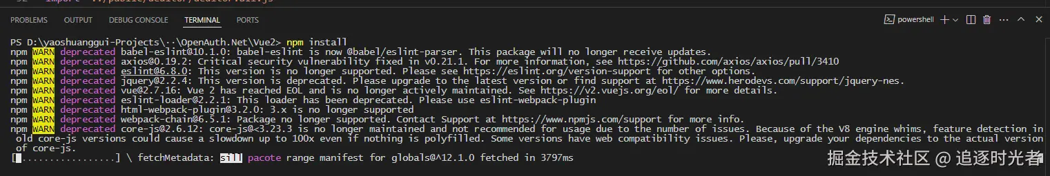 使用以下命令安装项目所有依赖(第一次执行的时间有点长,需要慢慢等待):
