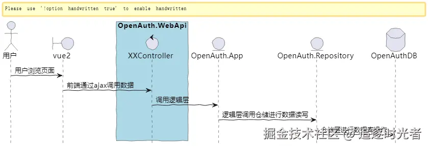 OpenAuth.Net 是一个基于 .NET 开源免费(Apache-2.0 License)的权限管理及快速开发框架,.NET 开源最好用的权限工作流系统。它源于 Martin Fowler 的企业级应用开发思想,并结合了最新的技术组合,如 SqlSugar、EF、Quartz、AutoFac、WebAPI、Swagger、Mock、NUnit、Vue2/3、Element-ui/plus、IdentityServer 等。该项目架构易于扩展,文档齐全且免费,特别适合中小企业使用。