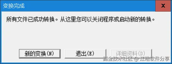 转换完成后,程序会弹出成功提示,告知您转换已顺利完成。
