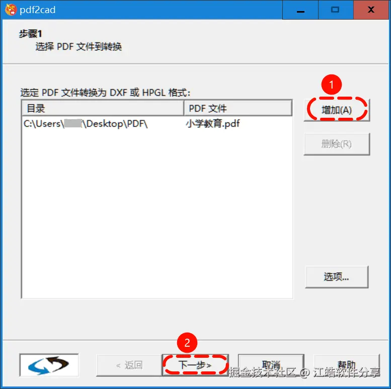 使用时只需选择需要转换的PDF文件,若需批量处理,可点击“增加”按钮一次性导入多个文件。