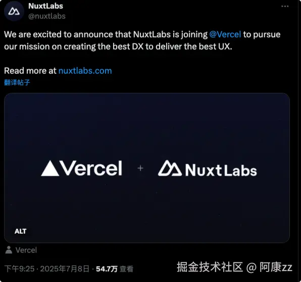 Vercel 收购了 Nuxt 以及背后的核心团队 NuxtLabs !