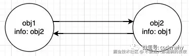 - 如果两个对象相互引用,它们的引用计数器永远不会为0,即使它们已经成为垃圾对象。