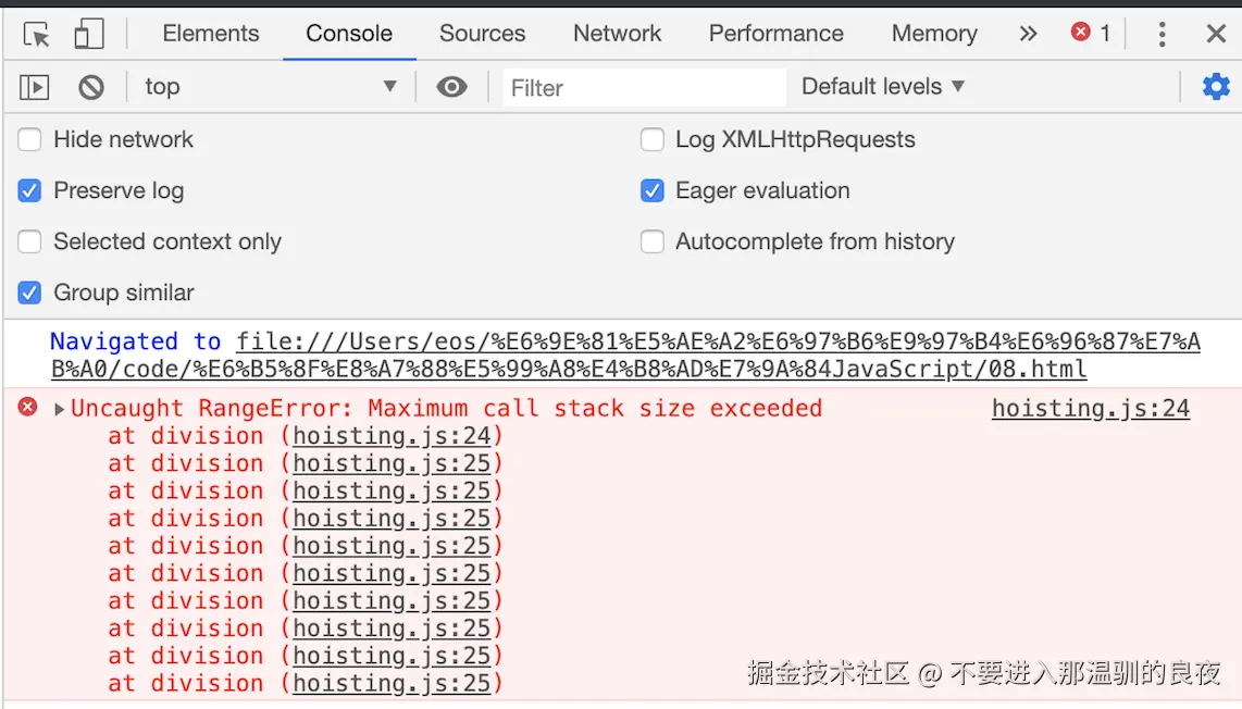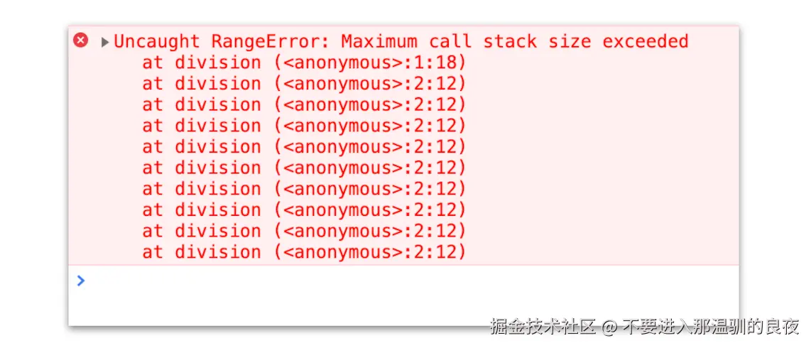 这是因为当 JavaScript 引擎开始执行这段代码时,它首先调用函数 division,并创建执行上下文,压入栈中;