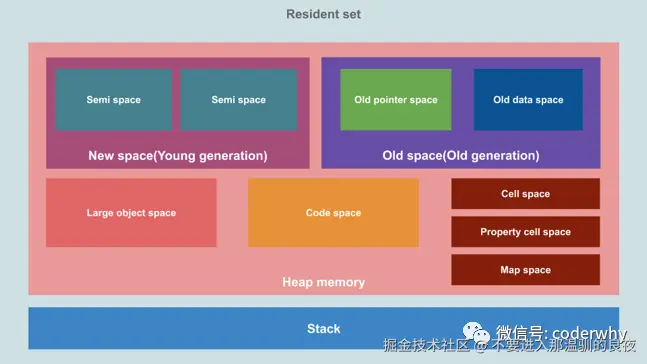 这些不同的内存块都有各自的特点和用途,V8 引擎会根据对象的生命周期和大小将它们分配到不同的内存块中,以优化内存的使用效率。