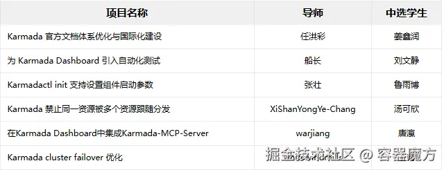7月1日,开源之夏2025为期三个月的项目开发正式拉开序幕。历经导师、社区、组委会三轮审核,共有6位海内外高校同学在激烈的竞争中脱颖而出,欢迎同学们的加入!成功中选Karmada社区任务的同学,将在社区导师的指导下,开启云原生多云多集群前沿课题共创。