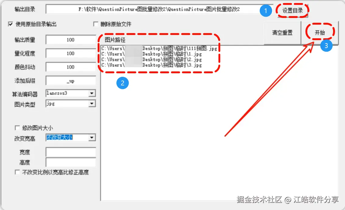 操作方式非常直观,只需将图片拖入界面,选择目标尺寸,点击开始处理,系统便会自动完成批量修改。