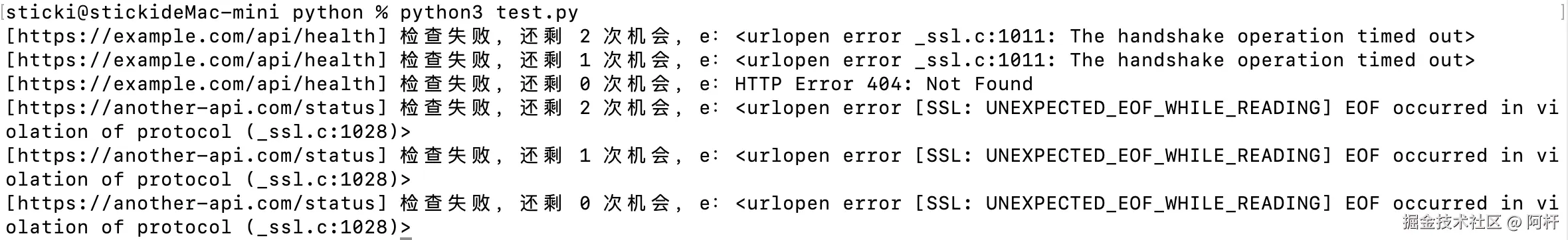 logger.warning(f"[{url}] 检查失败,还剩 {retries_left - 1} 次机会,e:{e}")