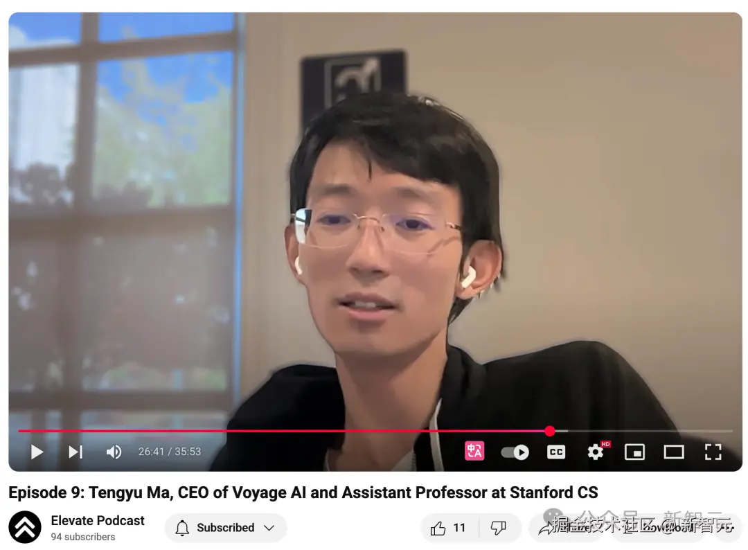 马腾宇是斯坦福大学计算机科学系助理教授,也是 Voyage AI 的联合创始人兼首席执行官。