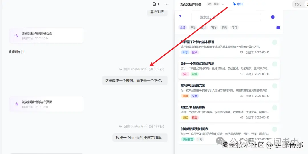 大家应该还记得我们第一版的UI提示词展示的时候,非常大,占位置,因为他是一个卡片的形式。 大家也可以看下 当产品经理开始AI编程:一个提示词插件的诞生记与我的AI协作心得 回忆下。