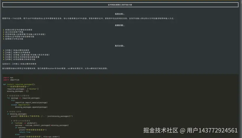 而 AiPy 开发的 HTTPS 证书域名提取 GUI 程序,在效率方面实现了显著突破,可在几分钟内从数百个 IP 中批量提取域名信息,为安全从业者提供了高效的解决方案。
