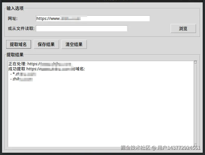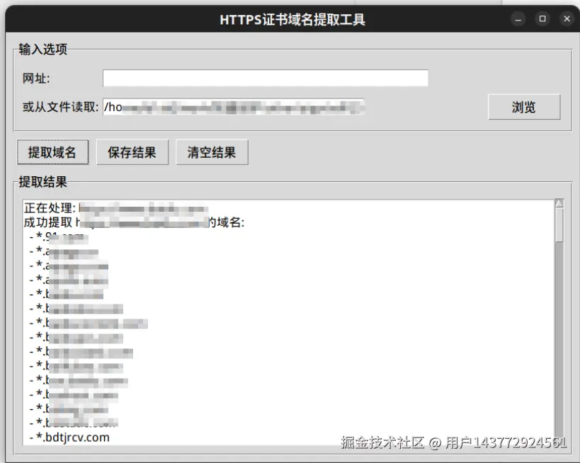 提示词:帮我写一个提取https协议的web应用的证书的域名信息的GUI应用。要求可以使用手动输入的方式,也可以从文件中读取。只用提取域名就行了