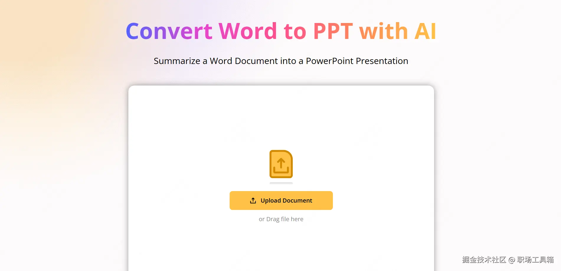 随着AI技术的发展,Word一键生成ppt免费AI工具的涌现,在传统工具之外,为众多职场人提供了新的文档转换方式。这些Word生成ppt的智能化工具不仅能够快速完成格式转换,还能保持原有文档的结构和美观性,真正实现了文档格式转换的自动化。