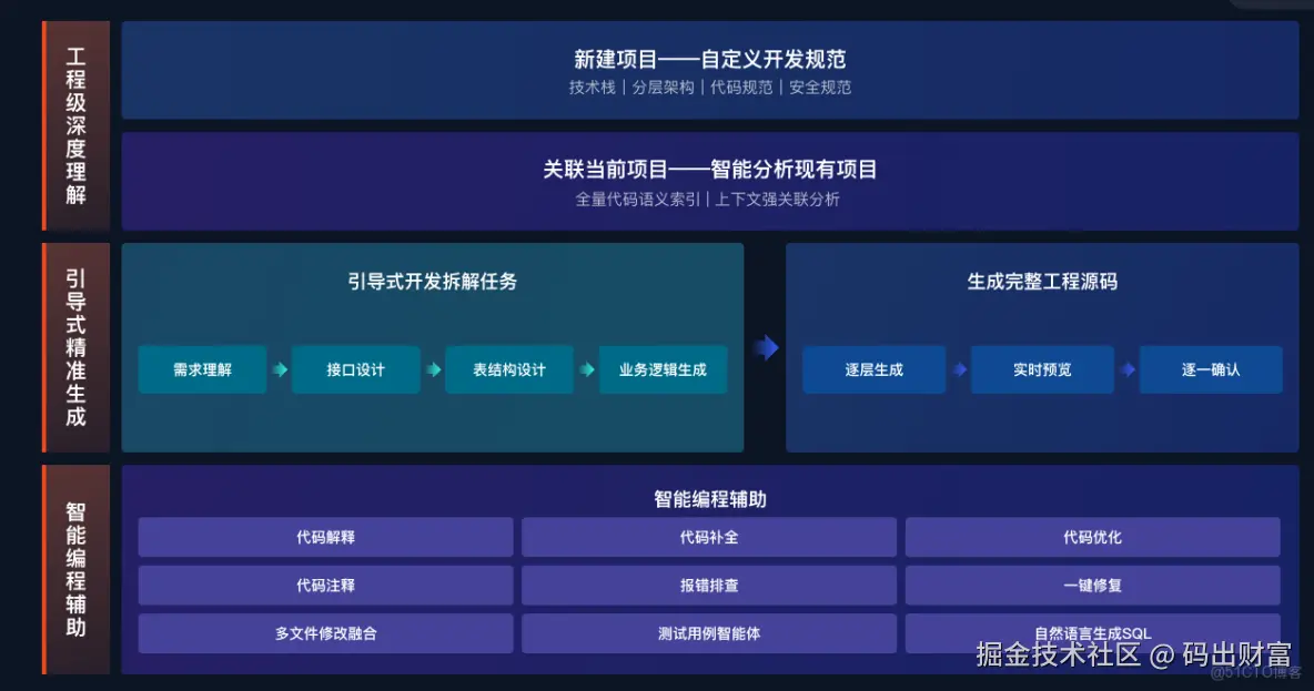 对于研发过程而言,飞算JavaAI的介入打破了传统开发的壁垒。在项目初期的需求分析阶段,它能辅助开发者梳理需求要点,转化为清晰的技术实现路径;编码环节,它能实时提供语法提示、自动补全代码,降低编码错误率;测试阶段,它可生成针对性的测试用例,提升测试覆盖率与效率。无论是老项目重构还是新功能开发,飞算JavaAI都能显著缩短研发周期,让原本需要数天的开发任务,在AI的助力下大幅压缩时间成本,实现“降本增效”的研发目标。