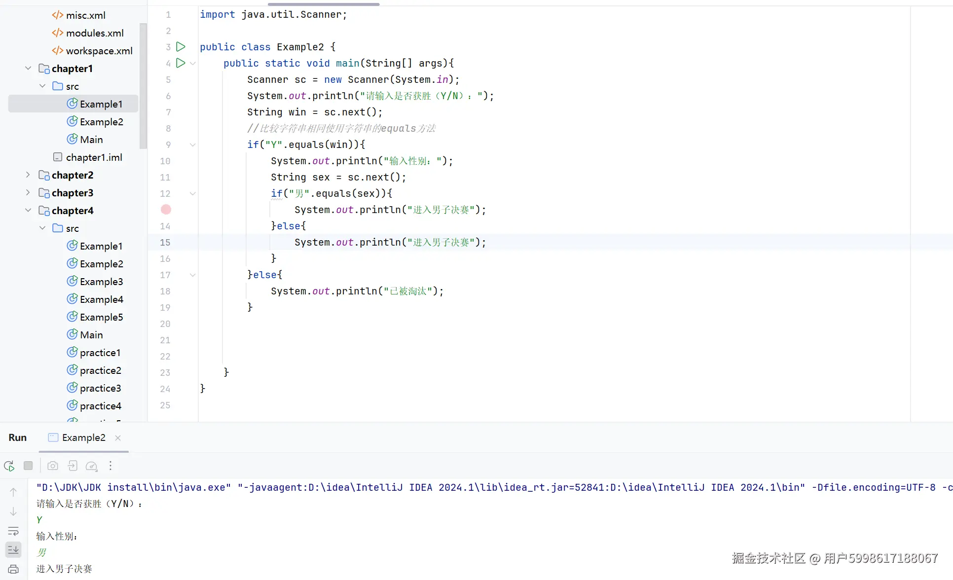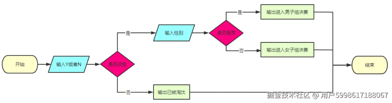 在半决赛中,如果取得胜利,则可以进入决赛。否则,输出"已被淘汰"。如果是男子,则输出"进入男