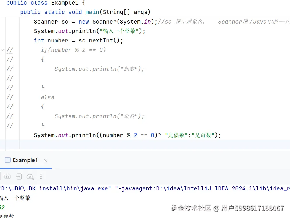从控制台输入一个整数,如果该数字是偶数,则输出输入的数字"是偶数",否则输出输入的数字"是奇