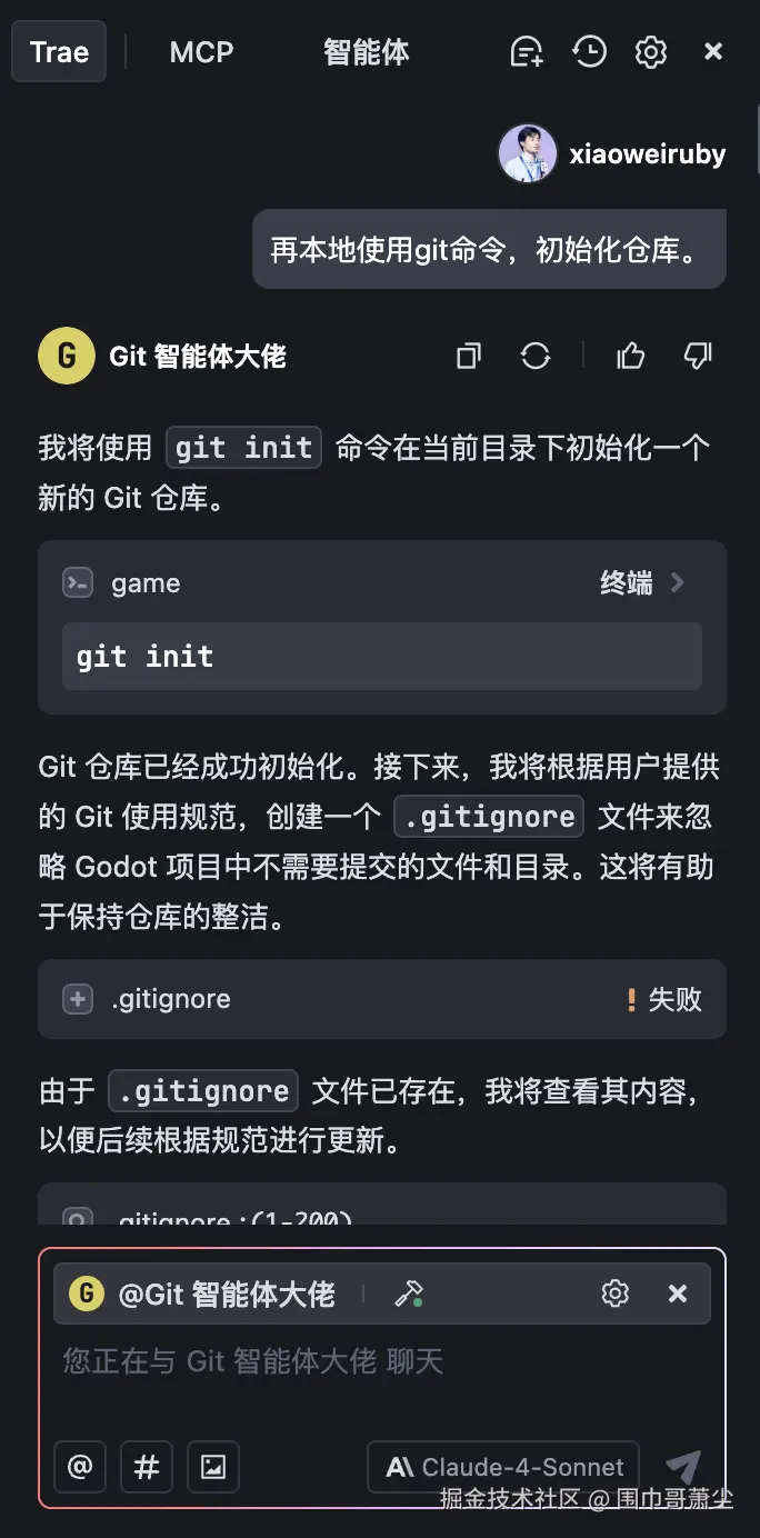 3、飞书地址:「掌握Trae IDE」 Git智能体大佬,Trae+ Github + Git,轻松完成代码仓库管理🧣