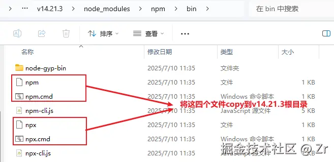 - 将npm的bin目录下的命令文件copy到v14.21.3的根目录下
