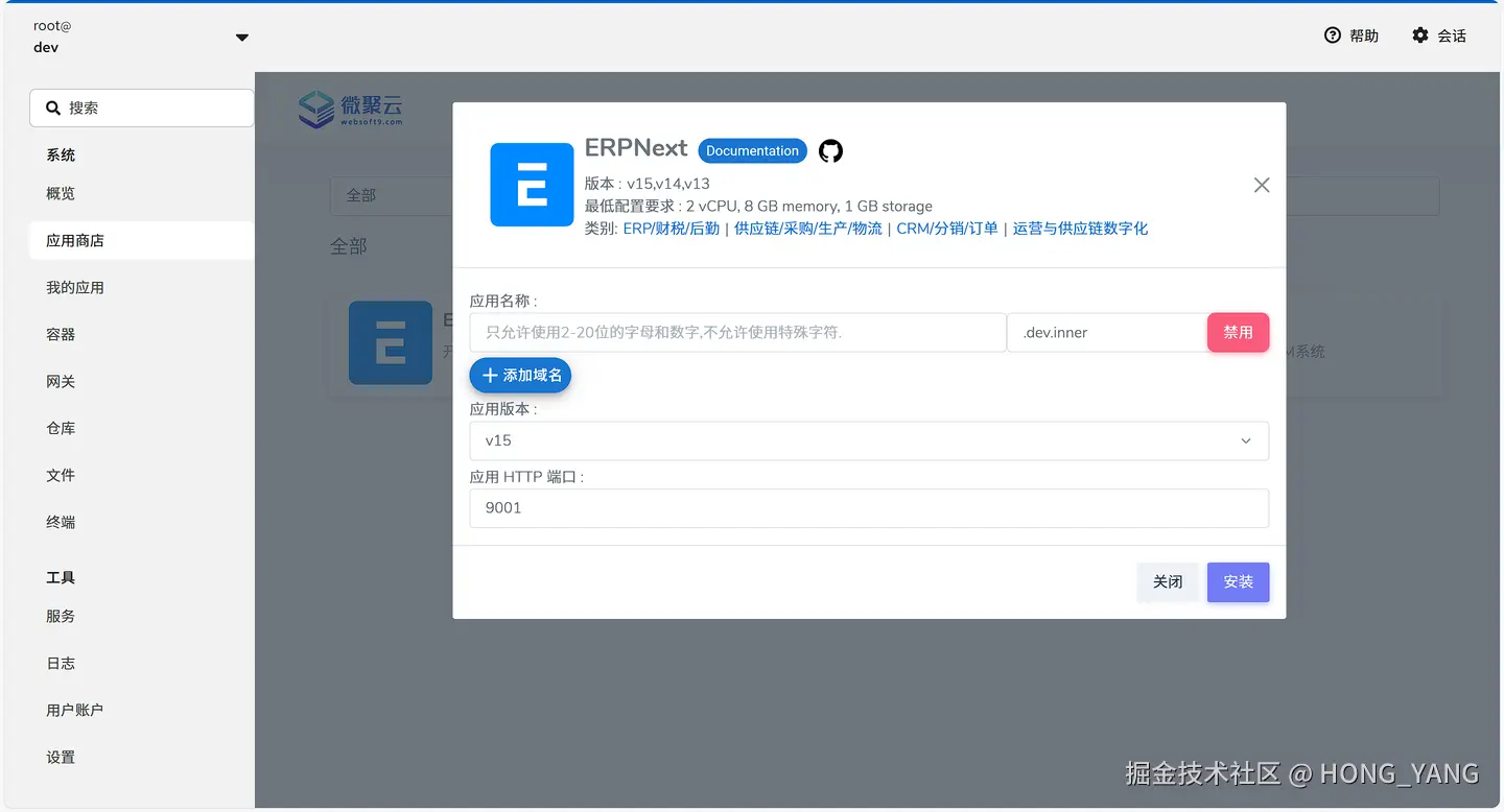 使用 Websoft9 轻松部署 ERPNext 的步骤
