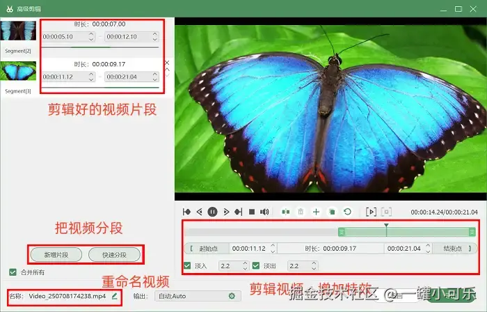 3、强大剪辑功能: 录制完成后,不用再去四处找其他专门的剪辑软件,直接在数据蛙录屏软件中就可以对录制好的视频进行剪辑操作。你可以对视频进行分段处理,删除不需要的部分;添加各种特效,如转场特效等。