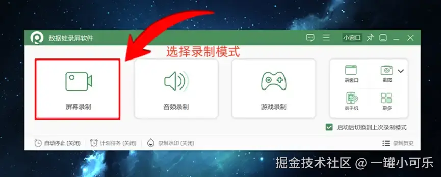 步骤1:首先,打开数据 蛙录屏软件,在软件主界面中,你可以看到多种录制模式的图标。根据你的录制需求,选择相应的模式,如果你需要录制电脑屏幕操作,可以选择 “屏幕录制” 模式。