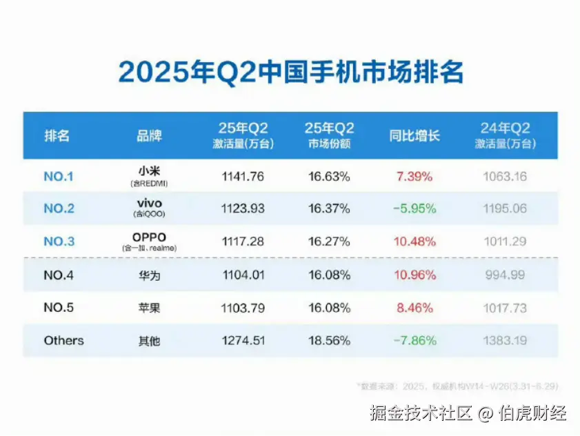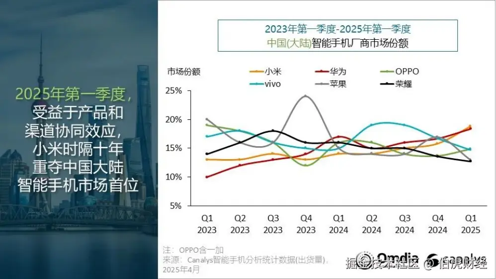 如今国内手机市场的增长空间已经不多了,进入以换机需求为主要动力的存量市场。Canalys此前预测,智能手机市场的增长将从2025年开始步入平台期,2024年至2028年的年复合增长率进一步下调至1%。这也意味着,每多卖出一部新手机,拿到了都是竞争对手的份额。