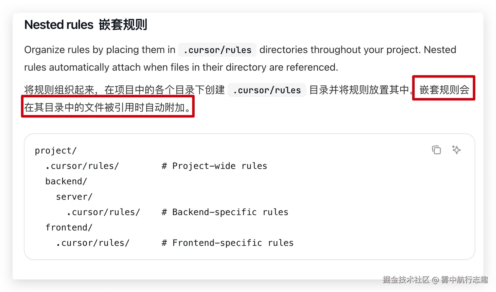 官网说明:大型语言模型在生成完内容后不会保留记忆。规则在提示级别提供持久且可重用的context 。应用规则时,规则内容将包含在模型context 的开头。这为 AI 提供了一致的指导,用于生成代码、解释编辑或帮助处理工作流。