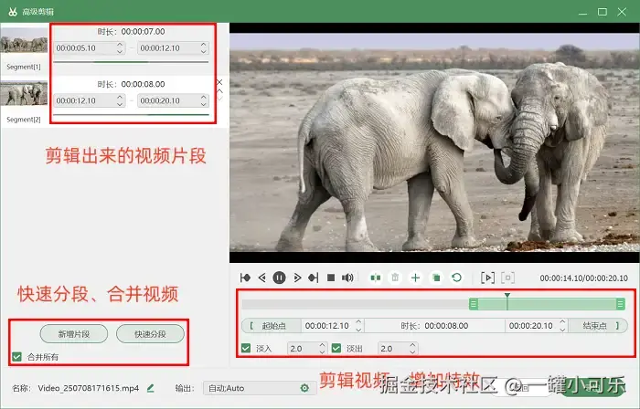 步骤3:在完成录制后,无需手动查找文件。数据蛙录屏软件会自动将生成的视频保存至 “历史录制” 板块。在列表中定位目标视频后,可以直接点击播放预览效果。如果需要进一步优化视频,可以通过 “高级剪辑” 功能进行操作,支持添加转场特效、裁剪冗余片段、调整视频参数等专业处理。