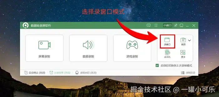 步骤1:首先在电脑中找到数据 蛙录屏软件,启动程序后进入主界面。此时软件会清晰展示屏幕录制、游戏录制、摄像头录制、窗口录制等多种录制模式。今天我们选择 “窗口录制” 模式。
